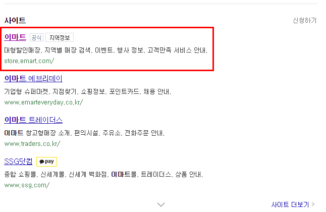 1. 포털사이트 검색창에 '이마트' 작성 후 검색