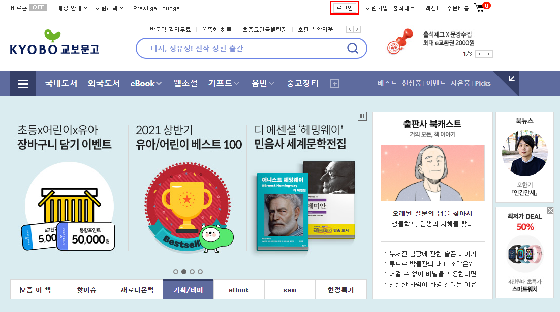 교보문고에서 진행하는 여러 프로모션 및 할인, 이벤트가 있지만,