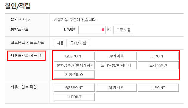 그 외에 다른 제휴포인트를 사용하셔도 됩니다.