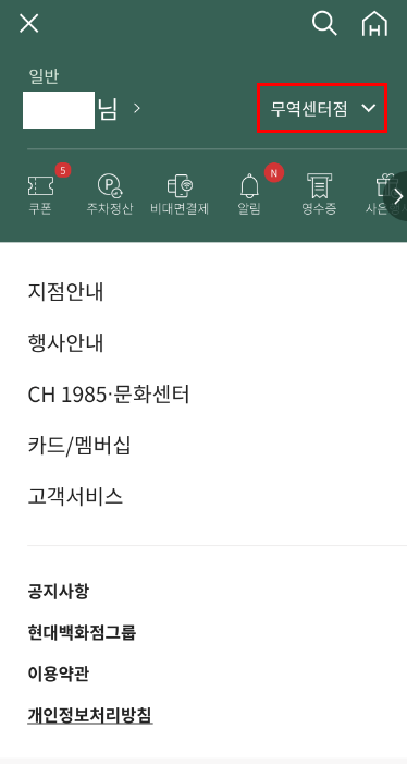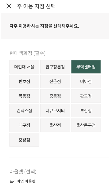 저는 '현대백화점 무역센터점' 으로 되어있습니다.