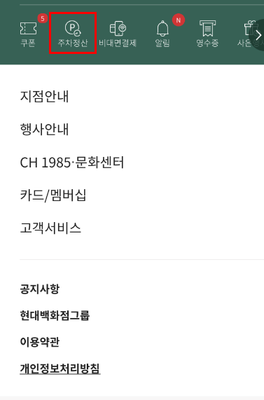 현대백화점 무료주차 하는 방법